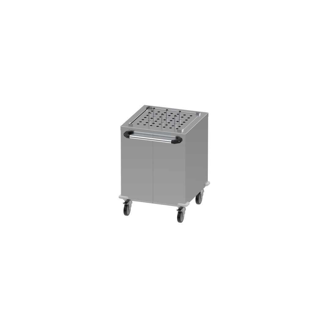 Univerzální nevyhřívaný plošinový zásobník představuje špičkové řešení pro efektivní a přehledné skladování i transport nádobí ve velkokuchyních. Díky nastavitelné výšce zvládne pojmout až 16 sloupců kulatého či hranatého nádobí a 4 sloupce nádobí o hraně nebo průměru do 280 mm. Robustní konstrukce z nerezové oceli AISI 304 garantuje maximální odolnost, hygienu a dlouhou životnost i v nejnáročnějším provozu. Hladký vnější plášť a otevřený přístup shora umožňují rychlou a bezproblémovou údržbu. Vyjímatelná platforma s kolečkovým vedením pak zajišťuje mimořádně plynulou obsluhu a konzistentní výdej nádobí. Pro bezpečný a snadný pohyb jsou zásobník vybaven plastovými rohovými nárazníky a čtyřmi otočnými kolečky, z nichž dvě mají aretaci pro maximální stabilitu při manipulaci. Tento zásobník je ideální volbou pro každé moderní gastro zařízení, které chce zrychlit provoz, zvýšit efektivitu a udržet si dokonalý pořádek při práci.Doplňkové parametry