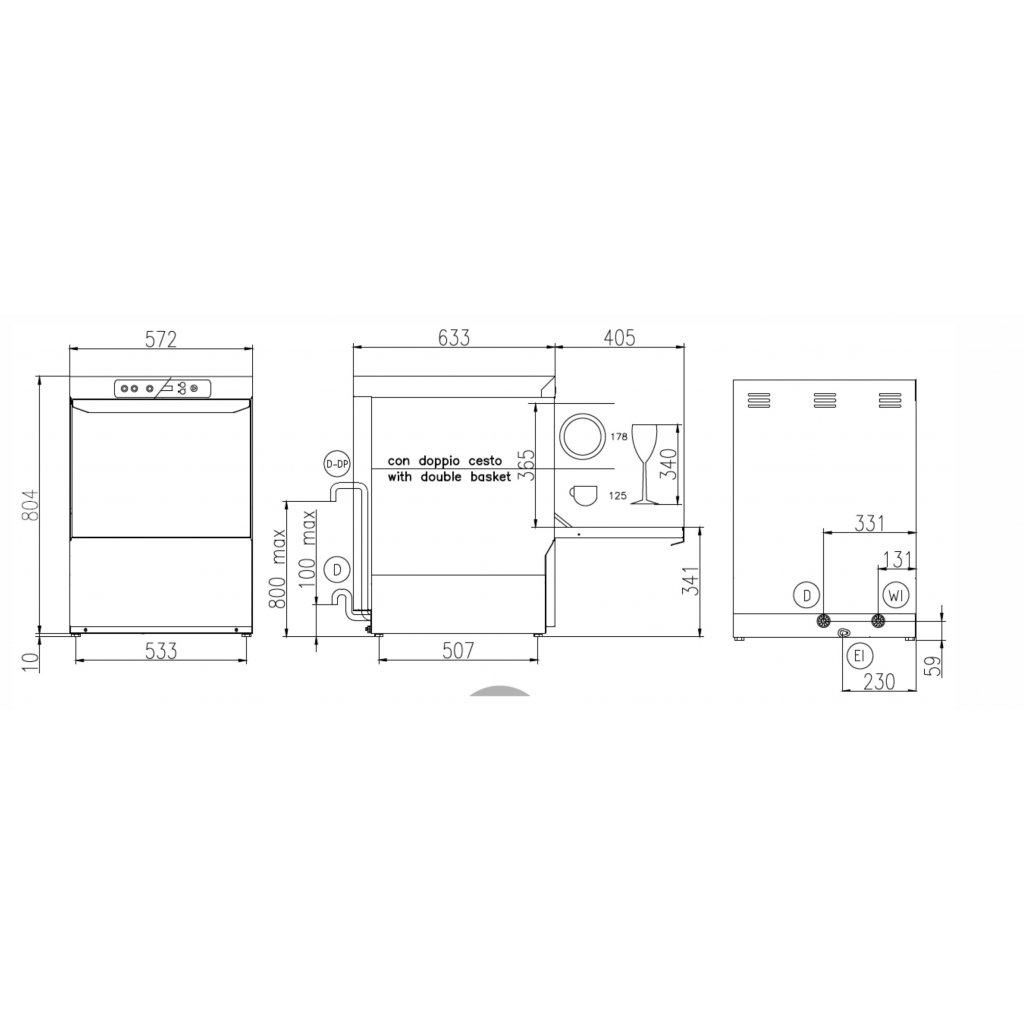 HD, Heavy Duty: souběžný ohřev vany a bojleru zkracuje časy mytí Jednoduché ovládání mechanickými tlačítky Dvouplášťové provedení termické soustavy snižující úniky tepla o 25%. Dvouplášťová dvířka s těsněním Lisované podpěry košů a lisovaná vana Multipower technogy (jen pro M 500) Nerezová mycí a oplachová ramena Celonerezová konstrukce z kvalitní potravinářské oceli EN 1.4301/ AISI 304 Termostop Peristaltický dávkovač mycího a oplachového prostředku Vhodná pro mytí gastronádob GN 1/1 Produktivita 1000 sklenic o průměru 90 mm / hod 720 talířů / hod 160 GN 1/1 / hod 240 táců GN 1/1 / hod Součástí balení Mycí koš na sklo 1ks, koš na talíře, košík na příbory, hadice na vodu, odpadní hadiceDoplňkové parametry
