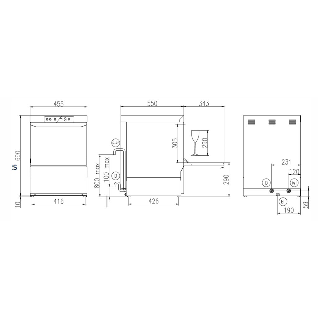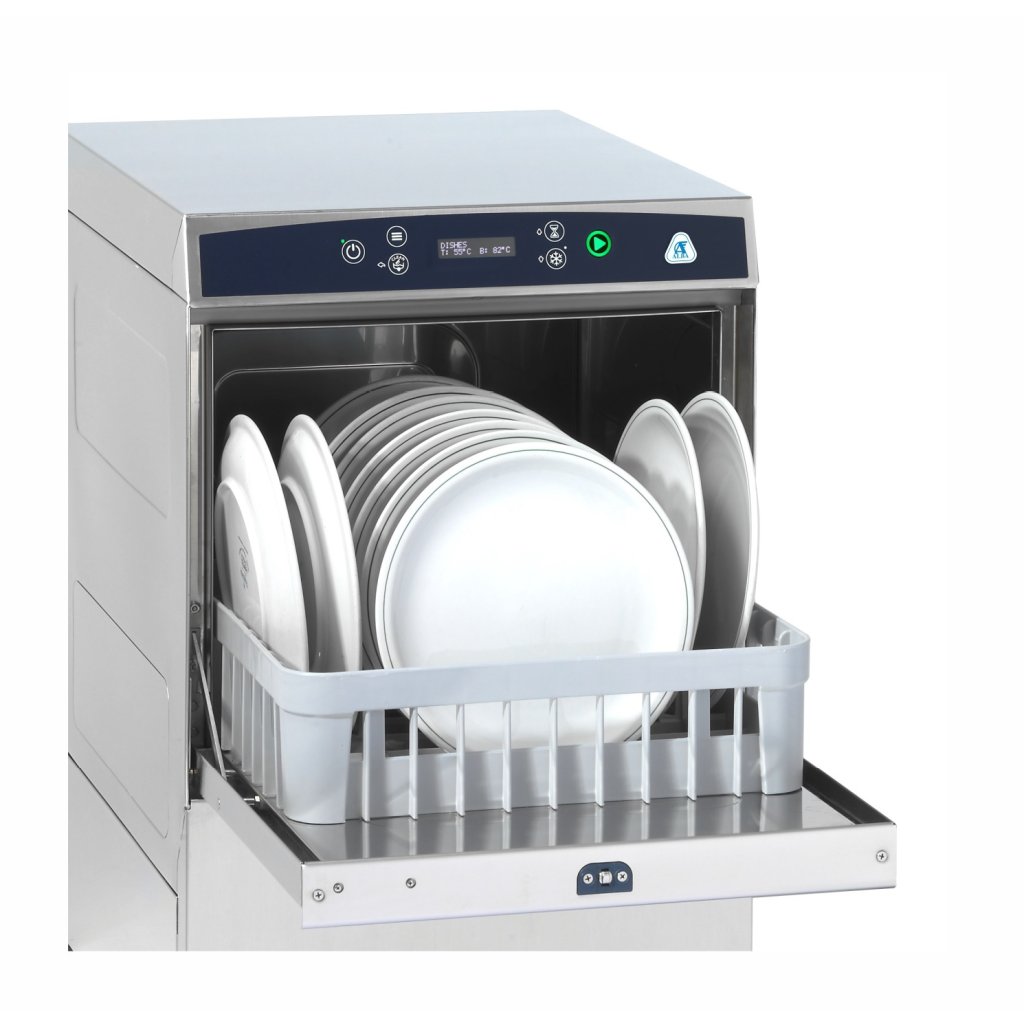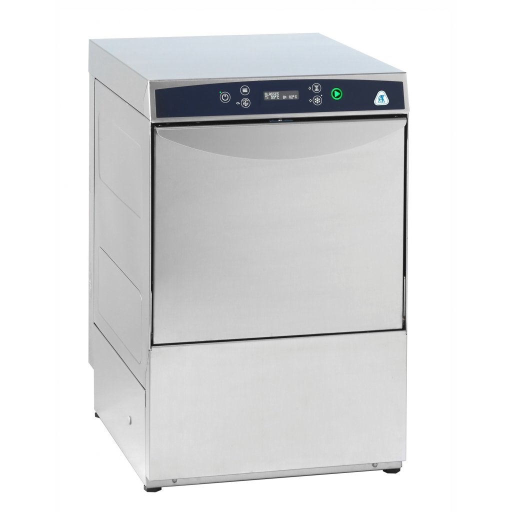 Prémiový oplachový systém – oplach není závislý na tlaku vody v síti Elektronické ovládání s LCD displejem a Multicolor tlačítkem Lisované podpěry košů Dvouplášťové provedení termické soustavy snižující úniky tepla o 25% Dvouplášťová dvířka s těsněním Peristaltický elektronický dávkovač mycího a oplachového prostředku Lisovaná vana a vodící lišty Nerezová mycí (2x) a oplachová (2x) ramena Celonerezová konstrukce z kvalitní potravinářské oceli EN 1.4301/ AISI 304 Termostop Dveřmi ovládaná funkce START/STOP Integrovaný sací a odpadní okruh pro kompletní vypuštění Automatické čištění myčky na konci pracovního dne Soft start: tlak vody z mycích trysek narůstá postupně a nedochází tak například k rozbití sklenic. Technikem libovolně nastavitelné časy mycího cyklu vzhledem k typu nádobí a míře ušpiněnění E-Managment šetří energii, když se myčka nepoužívá.