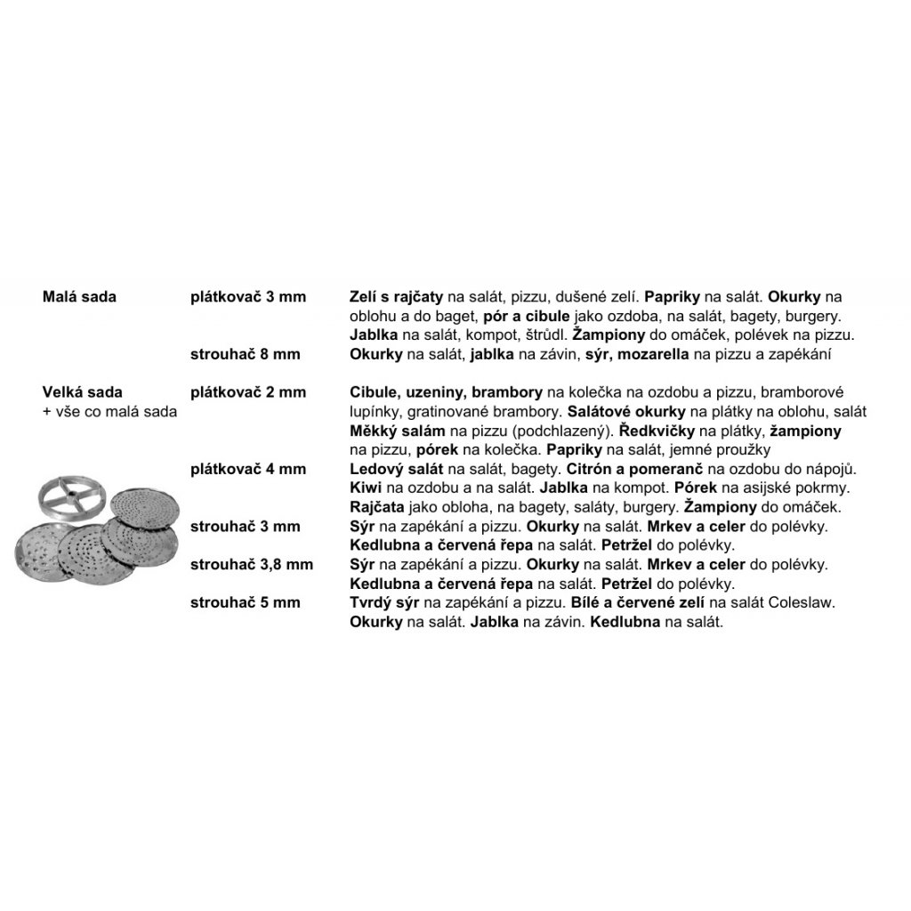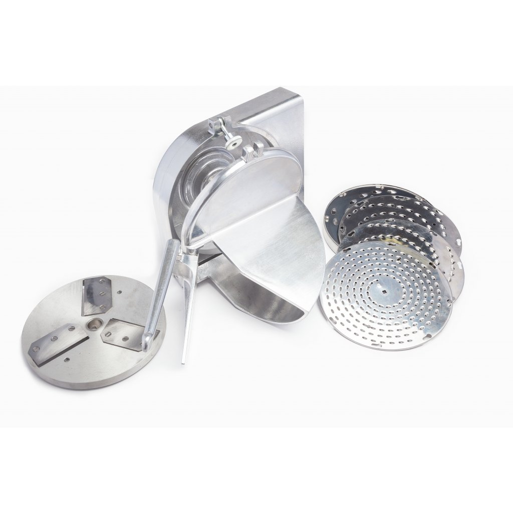 Pracuje po připojení k Univerzálnímu šlehacímu a hnětacímu stroji RE 22 a RE 24. Slouží ke krájení brambor, zeleniny a na strouhání strouhanky, brambor ad. Celokovové provedení - žádné plastové komponenty. 1x klíč pro vyjímání strouhacích plechů. 1x nosič strouhacích plechů.Doplňkové parametry