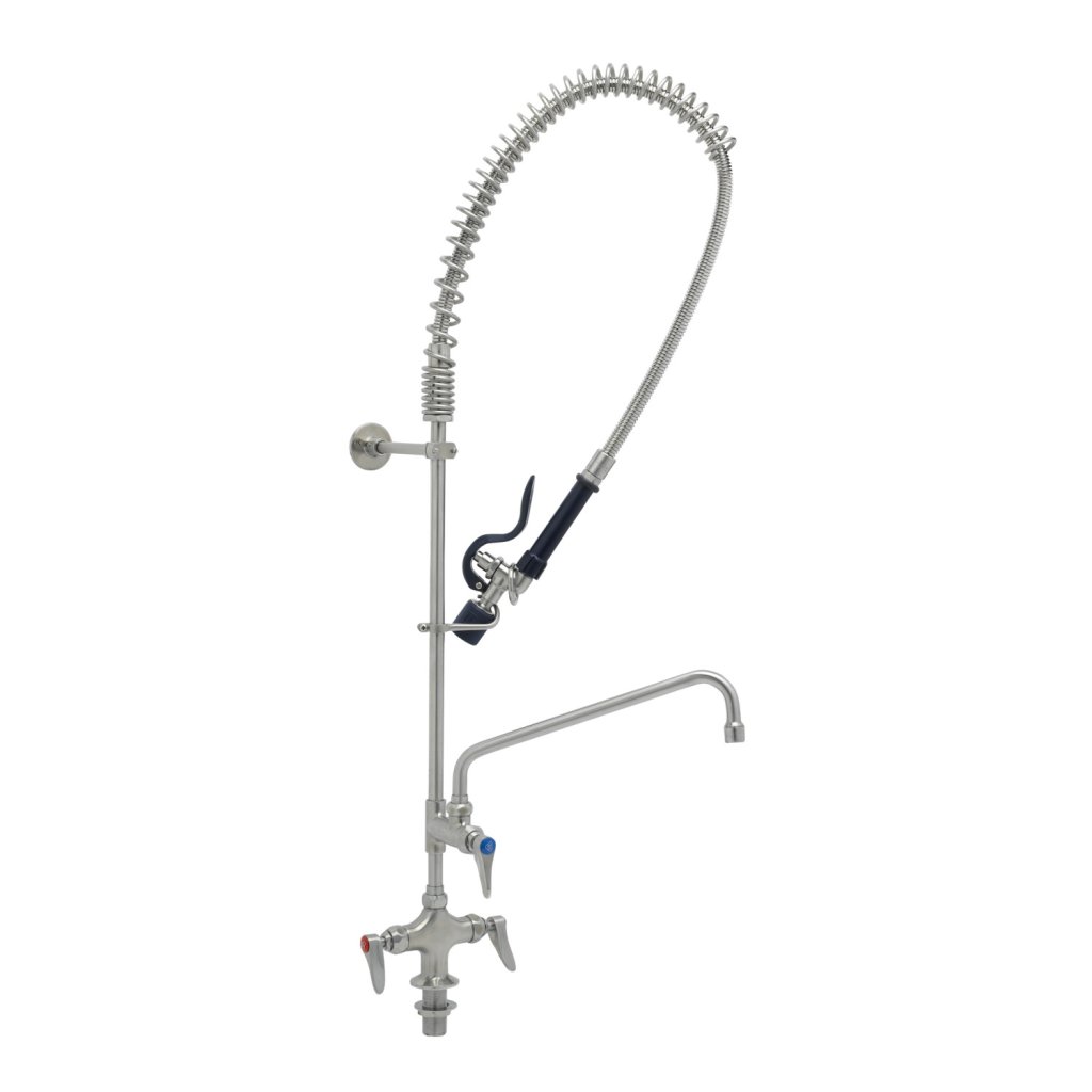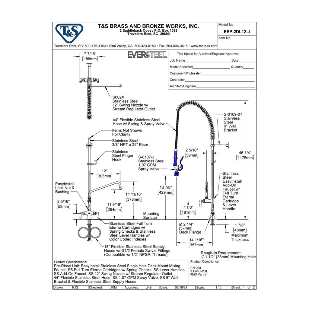 Nerezová předoplachová sprcha s montáží na desku a základnou s jedním otvorem. Je vybavena 12" napouštěcím ramenem, úsporným rozprašovacím ventilem S-0107-J (průtok 4 l/min), flexibilními hadicemi a nástěnným držákem. Montážní otvor do desky - 38 mm.