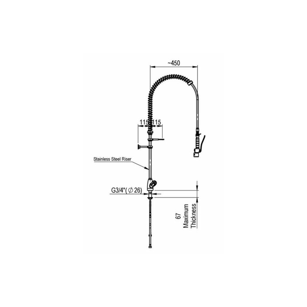 Tlaková sprcha se směšovací baterií, montáž do desky, celková výška 1000 mm, nízko průtokový rozprašovací ventil P591 (4 l/min.), přívodní pružné hadice samice G 1/2“, montážní otvor do desky 29 mm, hygienická certifikace DVGW pro pitnou vodu.Doplňkové parametry